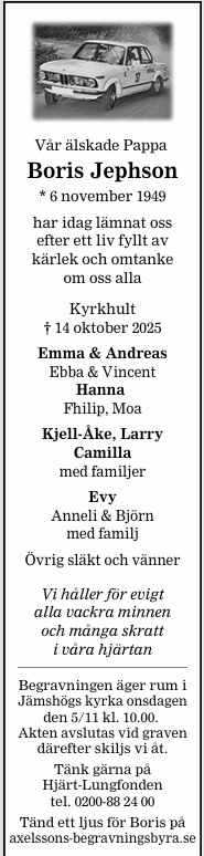 Motorsportfantasten Conny Warnheim har tyvärr somnat in.