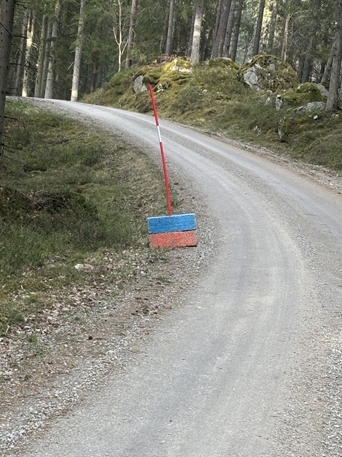 lecablock, däcktravar och stolpar till plast placerats ut på strategiska