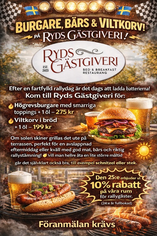 Ryds Gästgiveri - https://rydsgastgiveri.se/ - 10% rabatt. Ange koden